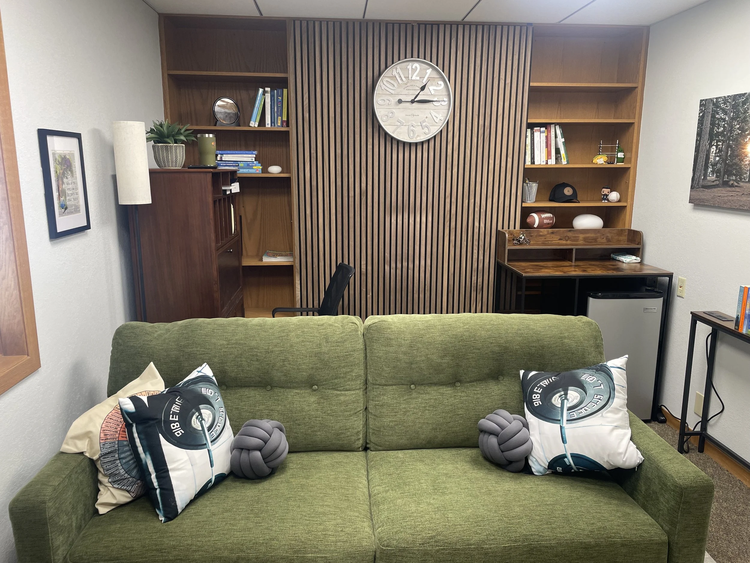 “I can't say enough about how grateful I am for the incredible transformation Liz brought to my counseling office. Working with a small space is no easy task, but she managed to make it feel open, inviting, and incredibly therapeutic. The thoughtful layout, calming colors, and strategic use of textures created a warm environment where my clients feel safe and comfortable. What truly impressed me was how she incorporated meaningful pieces of self-disclosure throughout the space — subtle yet intentional touches that allow clients to see parts of who I am. These elements have become wonderful conversation starters and have helped foster deeper connections with those I support. If you're looking for someone who combines creativity, functionality, and emotional insight into their designs, I highly recommend Liz. Her work has truly elevated my practice.”